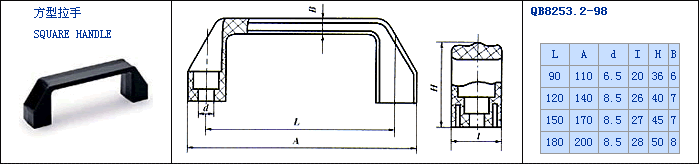 名稱(chēng):方形拉手 材料:工程塑料 外觀(guān):亞光,外形美觀(guān),自然 標(biāo)準(zhǔn):QB82853.2-98