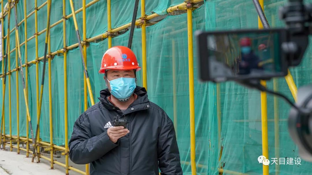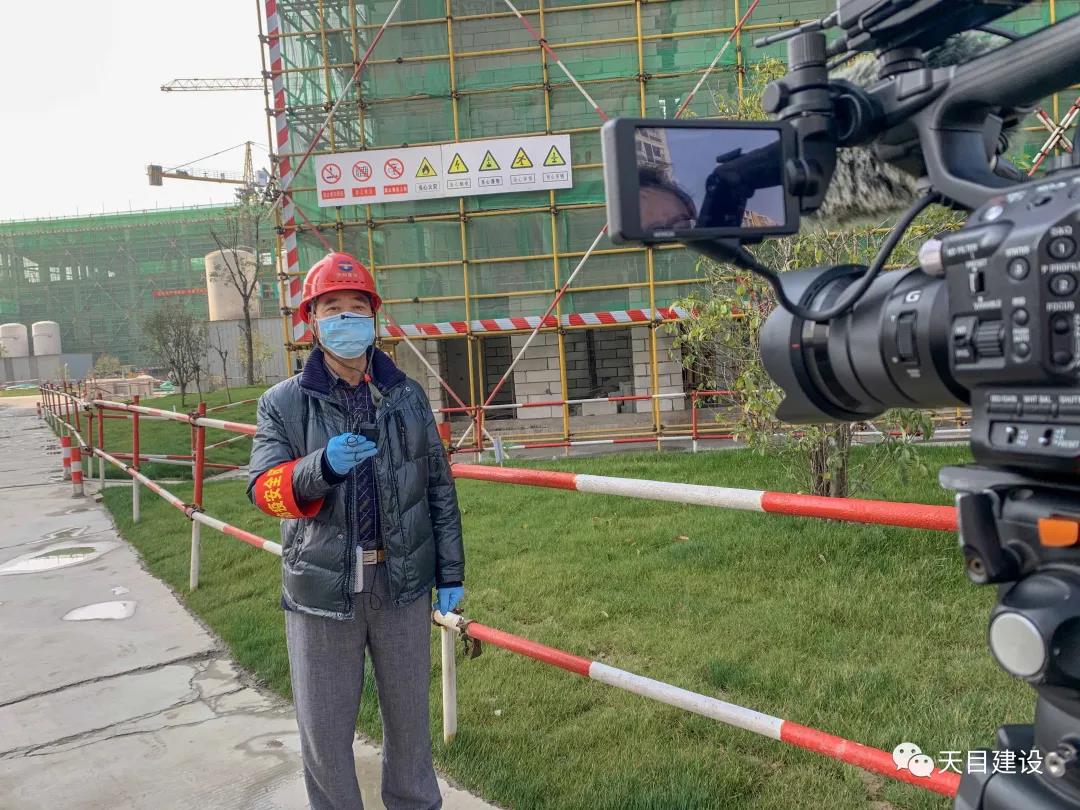 ▲溧陽市泓口小學(xué).幼兒園工程項目部現(xiàn)場防疫副組長戴華敏接受OUTV媒體采訪